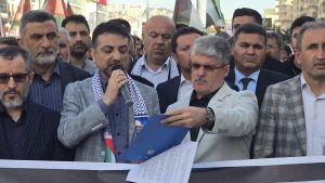 Açıklamanın sonunda, Mardin’den tüm dünyaya vicdan çağrısı yapılarak mazlumların yanında olunmaya devam edileceği ve hukuksuzlukların takipçisi olunacağı ifade edildi.