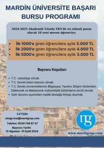 Merit Grup yönetim Kurulu Başkanı Zafer Karataş, “Halen vermekte olduğumuz Eğitim Burs Programımız yanında Mardin’li gençlerimize de ‘Mardin Üniversite Başarı Bursu Programı’ çerçevesinde 2024-2025 Akademik Yılı içerisinde başarılı gençlerimizin yanında olduğumuzu belirtmek isterim. Bu sebeple İlk 1.000’e giren öğrencilere aylık 5.000 TL, İlk 2.000’e giren öğrencilere aylık 4.000 TL, , İlk 5.000’e giren öğrencilere aylık 3.000 TL burs verilecektir. “dedi.