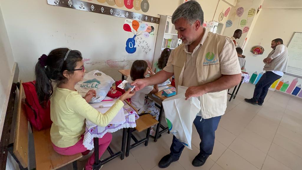 Help Yetim İnsani Yardım Organizasyonu Başkanı Cahit Ataş, yaptığı açıklamada, 600 çocuğa dağıtılan kırtasiye setleri, eğitim öğretim dönemi boyunca ihtiyaç duyacakları tüm kırtasiye malzemelerini içerdiğini ifade etti.