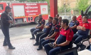 Mardin’de itfaiye personellerine temel itfaiyecilik eğitimi verdi.