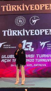 Antalya’da düzenlenen Uluslararası Taekwondo Turnuvası’nda güçlü rakipleri karşısında başarılı bir performans sergileyen Ronya Bedia Işık, turnuvayı ikinci sırada tamamlayarak dikkatleri üzerine çekti. Gösterdiği üstün performans sayesinde Milli Takım’a seçilme hakkı kazanan genç sporcu, önemli bir başarıya imza attı.
