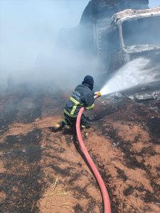 Mardin‘in Kızıltepe ilçesinde tarlada bulunan saman yüklü tır yandı.