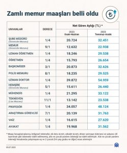 Cumhurbaşkanı Erdoğan tarafından en düşük memur maaşının 22 bin liraya yükseltileceği açıklanmıştı. Bu kapsamda, kamu görevlilerinin maaşlarında net 8 bin 77 lira artış yapılmasına ilişkin kanun teklifinin görüşmelerine TBMM’de başlanacak. Bu düzenlemenin yasalaşması halinde aile yardımı ödeneği dahil en düşük memur maaşı 11 bin 848 liradan 22 bin 17 liraya yükselecek.