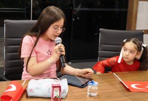 Daha sonra İl Başkanı Vahap Alma il yürütme toplantısına başkanlık etmesi için koltuğu temsili olarak Emine Eylül Anıl’a devretti. Toplantıya başkanlık eden Emine Eylül Anıl tek tek herkese söz hakkı verdi. İl Başkan Yardımcıları koltuğuna oturan çocukların ana temaları başta Filistin olmak üzere artık dünyanın hiçbir yerinde çocukların ölmemesi ve bir an önce barışın gelmesi gerektiği oldu.