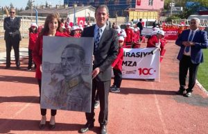 21 Kasım Şehir Stadyumunda devam eden kutlamalarda Vali Akkoyun ile Garnizon Komutanı katılımcıları ve vatandaşları selamladı.