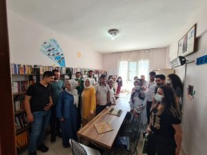 Gönül vererek bir çok çalışmaya imza atan Hayırda Yarışan Kadınlar Grubu başkanı Şüheda Şark, “Kütüphanemizin tamamı gönüllülük çalışmalarıyla kurduk. Kardeşimiz Elif Günlüoğlu’nun organizasyonuyla Mardin Artuklu Üniversitesi Sağlık ve Spor topluluğu öğrencilerinin de yer aldığı kütüphane kuruluşunda öğrencilerimiz kitapları sınıflandırarak, kitaplıkları kurarak, kitapları özenle dizerek kütüphaneyi beraber oluşturdu.