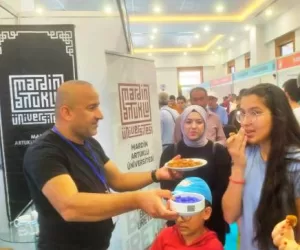 Ankara’da Üniversite Tanıtım Günlerinde Mardin Artuklu Üniversitesi alanını ziyaret eden eğitimci, öğrenci ve ailelere Mardin Şahmeran Çöreği, Mahlep Çöreği, Badem Şekeri ve Yöresel Mardin Kolonyası ikram edildi. Ziyaretçiler Mardin Yöresel lezzetlerine hayran kaldılar.
