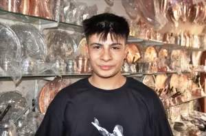 Muhammed Enes Özcan da eğitimine açık lisede devam ettiğini, 2 yıldır dedesi ve babasını izleyerek bakırcılığı öğrenmeye başladığını belirtti.
