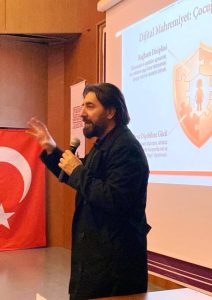 Kıranşal; insan onurunun değersizleşmesi, ahlaki değerlerin geri plana itilmesi, haz odaklı yaşam anlayışının yaygınlaşması ve kötülüğün normalleşmesi gibi başlıklar üzerinden öğrencilere önemli mesajlar verdi. Güç, para ve sosyal ağ ilişkilerinin insan doğasının önüne geçtiği bir ortamda, bireylerin değer temelli bir duruş sergilemesinin önemine dikkat çekti.