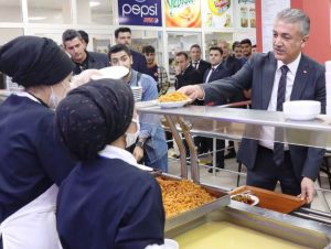 Vali Tuncay Akkoyun, ziyaretinde akşam yemeğini öğrencilerle birlikte yedi.