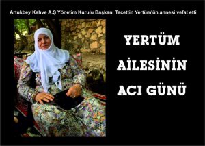 Mardin’in tanınmış Yertüm Ailesinden, Artukbey Kahve A.Ş.Yönetim Kurulu Başkanı Tacettin Yertüm’ün muhterem annesi  Mehmet Ali Yertüm’ün hanımı, Beşir, Temir,  Zeki ve İlim Yayma Cemiyeti Mardin Şube Başkanı Necmettin Başboğa’nın ablaları Ferize Yertüm, hakkın rahmetine kavuştu.